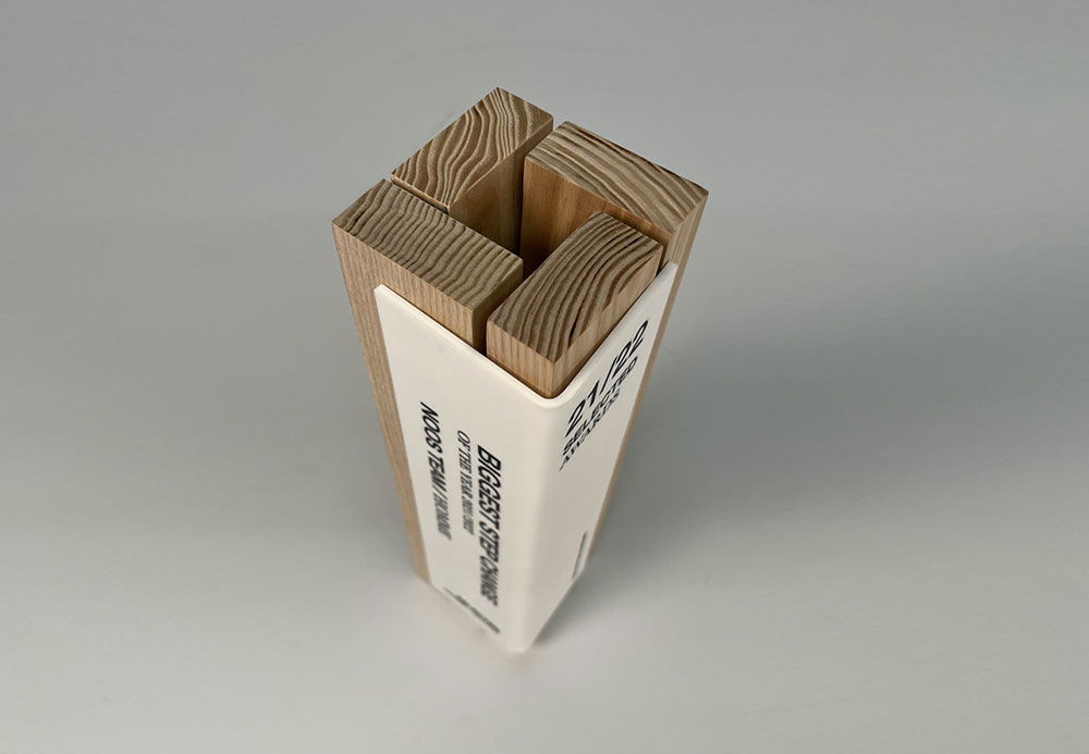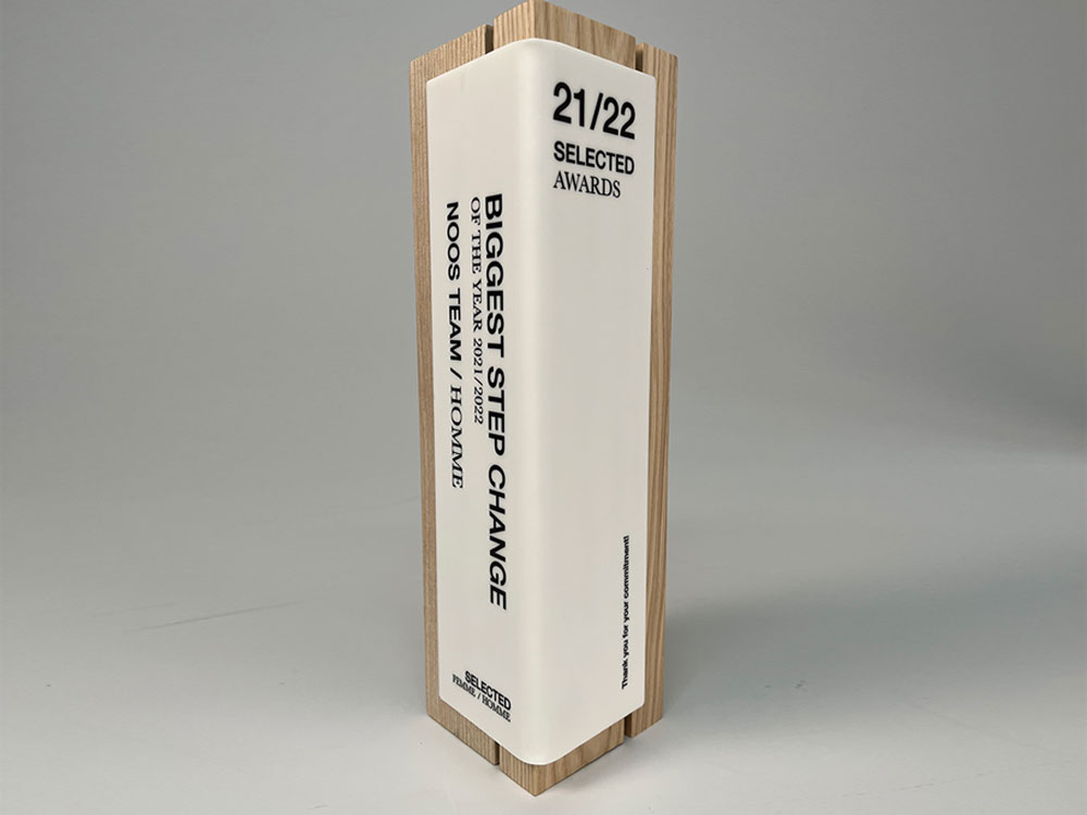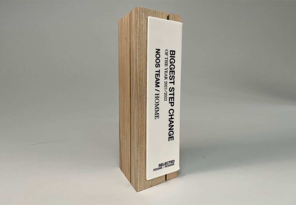 I samarbeid med Bestseller-merket Selected har vi designet og produsert en pris til deres interne prisutdeling. Til en avdeling som hadde utmerket seg spesielt godt, ønsket klesmerket å overrekke en pris i tråd med deres grønne omstilling. Løsningen ble derfor å produsere en pris med et miljøvennlig uttrykk, laget av ask fra overskuddsmaterialer brukt i møbelproduksjon, samt en 3 mm resirkulert akrylplate. Prisen er produsert på vår egen fabrikk i Danmark.