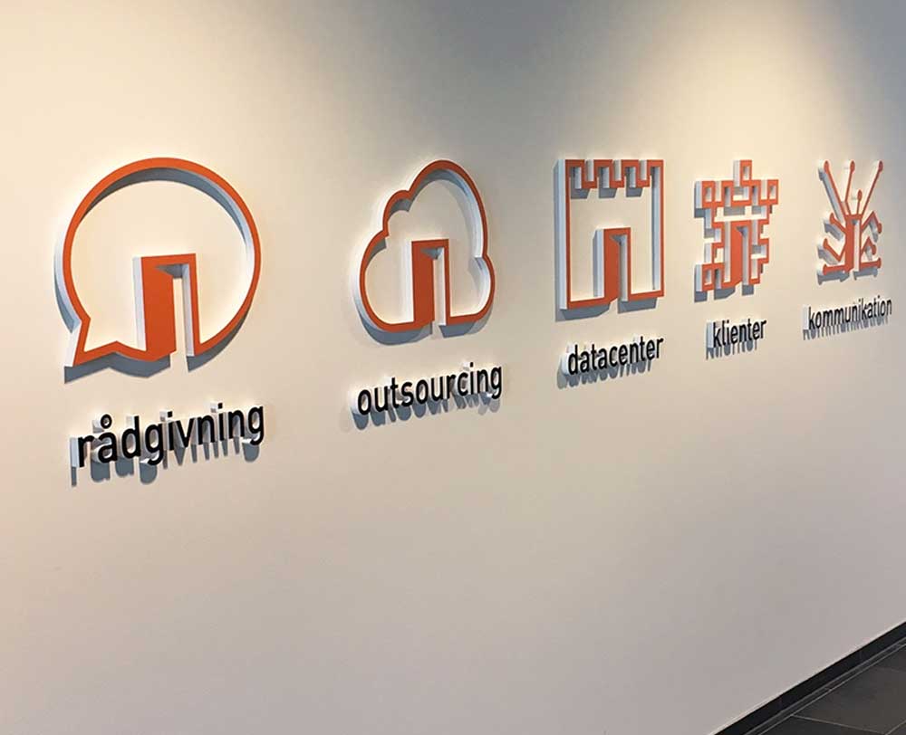 Ved denne løsningen svever fasadelogoen 1mm fra veggen.