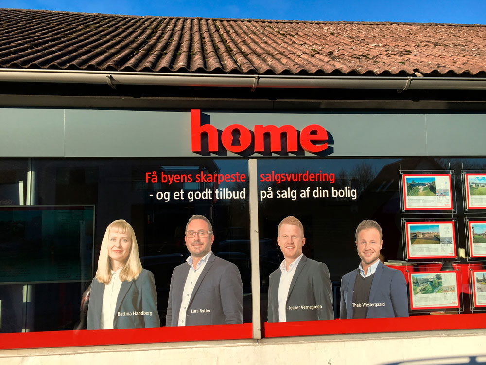 Vi har produsert vindusfolie med bilder av medarbeiderne til Home i Tilst, et tiltak som skulle gi et godt og personlig inntrykk til deres kunder. Bildene ble printet i storformat på...