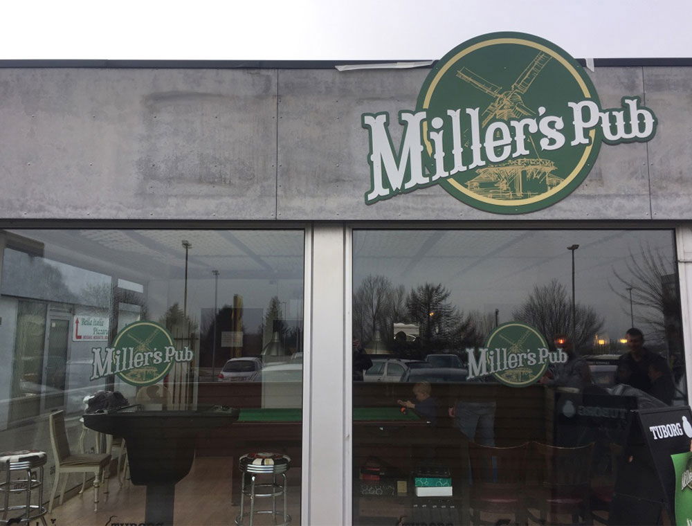 Millers Pub sto foran åpningen av sin nye sportsbar, og de kontaktet i den forbindelse Elefantprint for hjelp med utsmykking av fasade og interiør.