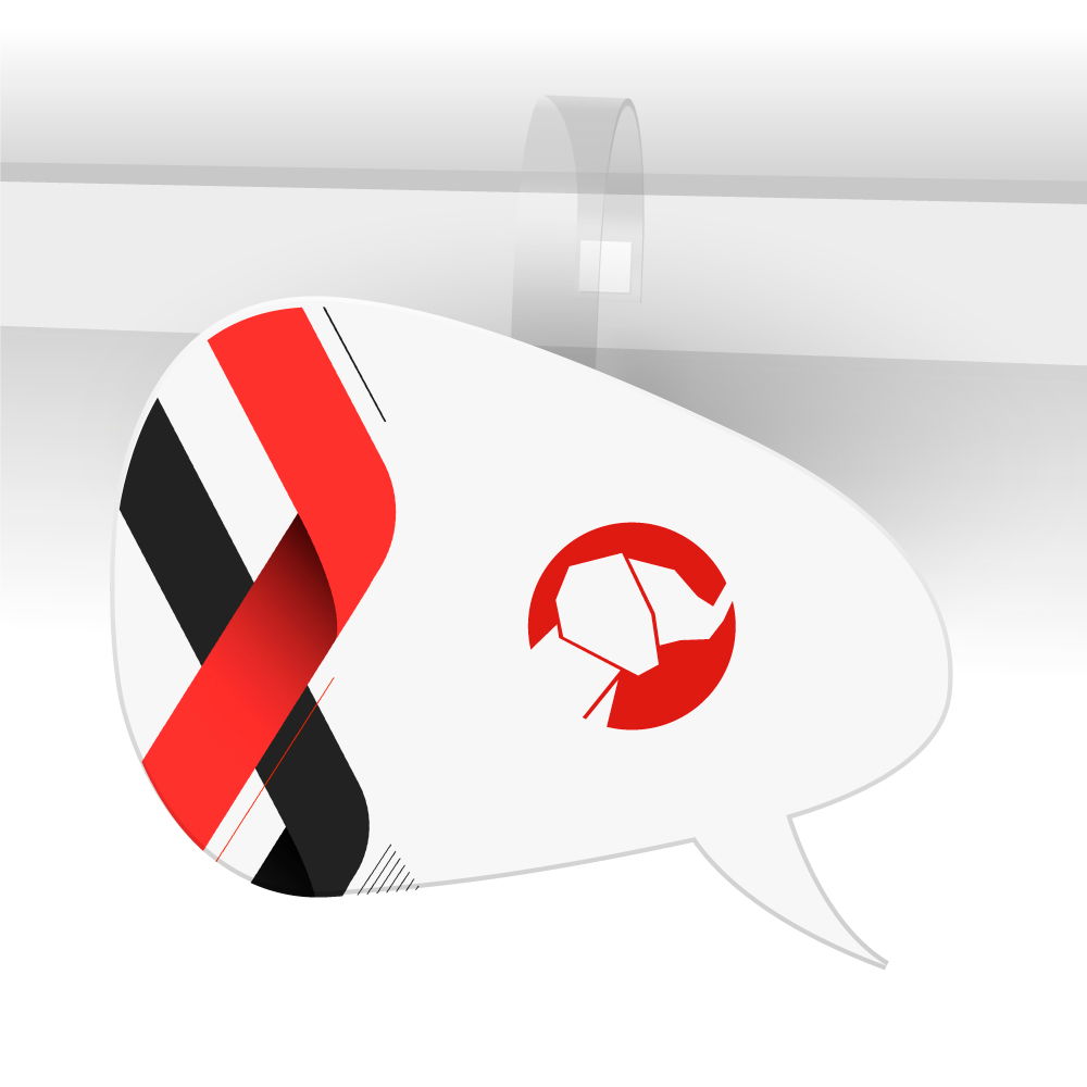 Du kan velge mellom en tynn, gjennomsiktig plastarm eller en aluminiumsarm. Med plastarmen vil budskapet "sprette" litt, noe som skaper bevegelse og øker synligheten. Med aluminiumsarmen bøyer du armen ved montering, og den holder seg deretter i den ønskede posisjonen. Aluminiumsarmen kan også dreies 90 grader, slik at kundene ser budskapet på vei mot hyllen i stedet for når de står rett foran den. Ønsker du å rotere aluminiumsarmen 90 grader, bør du velge dobbeltsidig trykk, slik at budskapet er synlig fra begge sider. Begge løsninger leveres med dobbeltklebende, avtakbar tape, klar til montering på hyller.